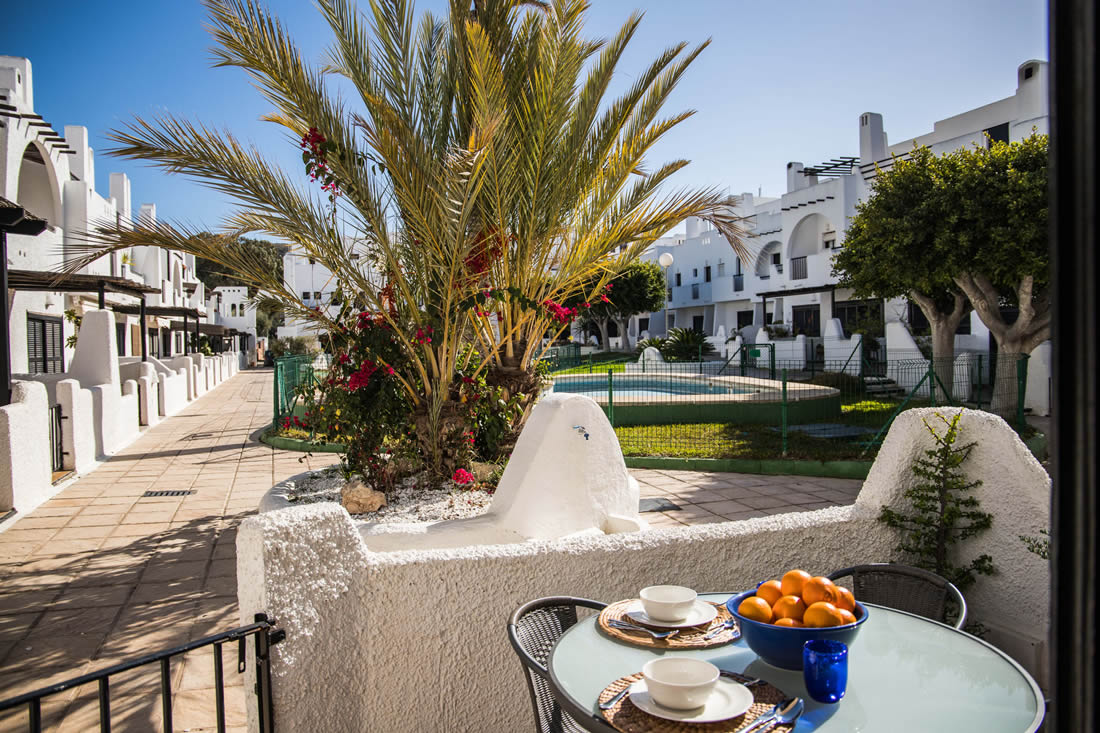 Agua Amarga, la antigua aldea de pescadores en donde se encuentra Casa Serene, mantiene su estructura original de casas cercanas a una playa tranquila y protegida.